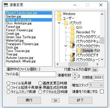 Ver1.00:Exif情報を持っているものに対して、画像作成日時等で連番を付すことが出来るようにした。